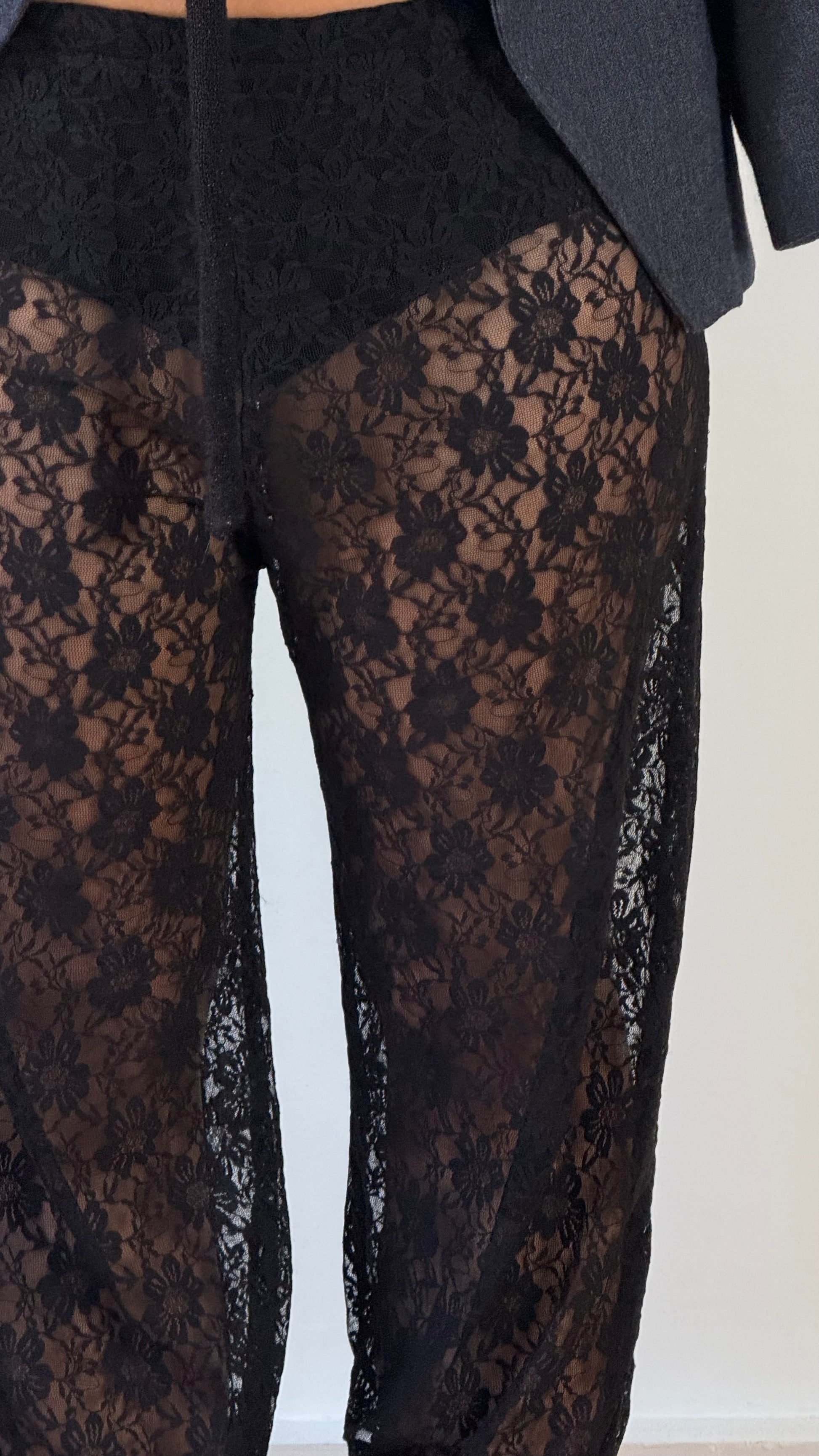Turn heads with these black lace pants, a perfect blend of elegance and allure. Featuring a semi-sheer floral lace design, they add a sophisticated, feminine touch to any outfit — ideal for special occasions or a chic night out.