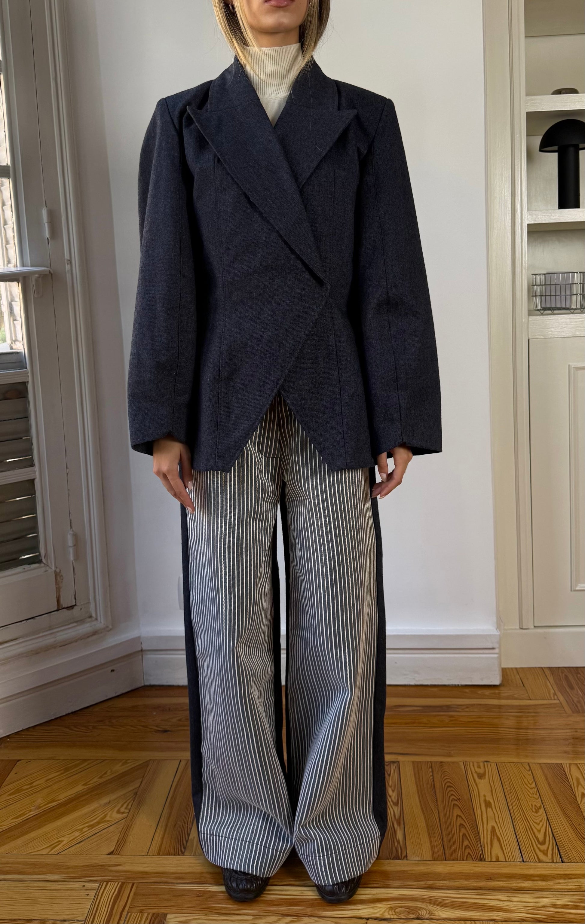 Refined, bold, and timeless, this structured oversized blazer brings sophistication to any look. Crafted from a medium-weight textured fabric, it features a sleek, tailored silhouette with sharp lapels and clean, architectural lines.