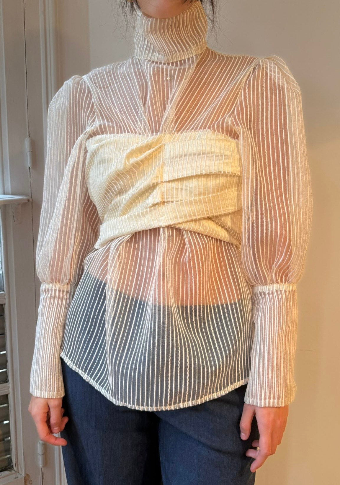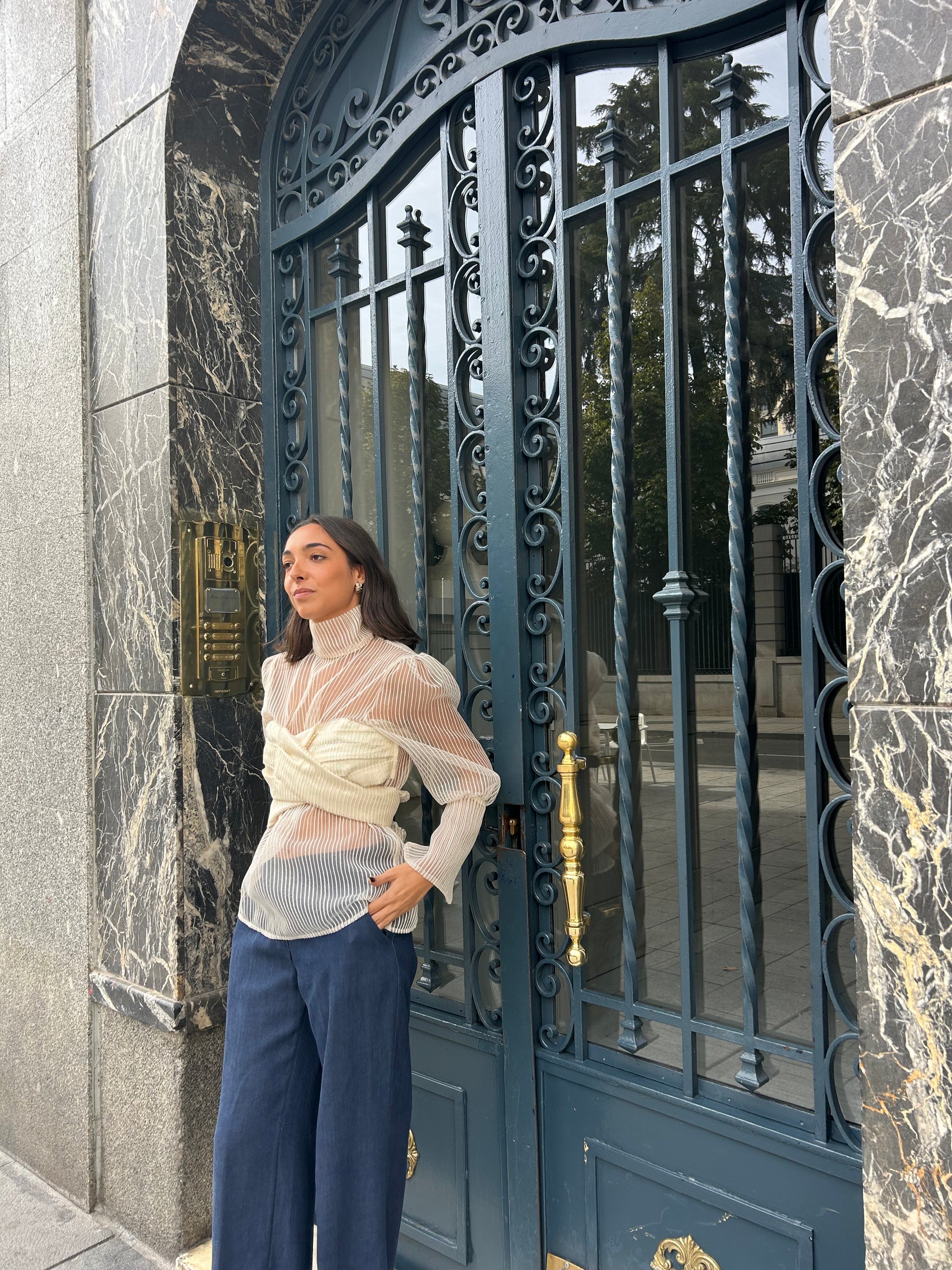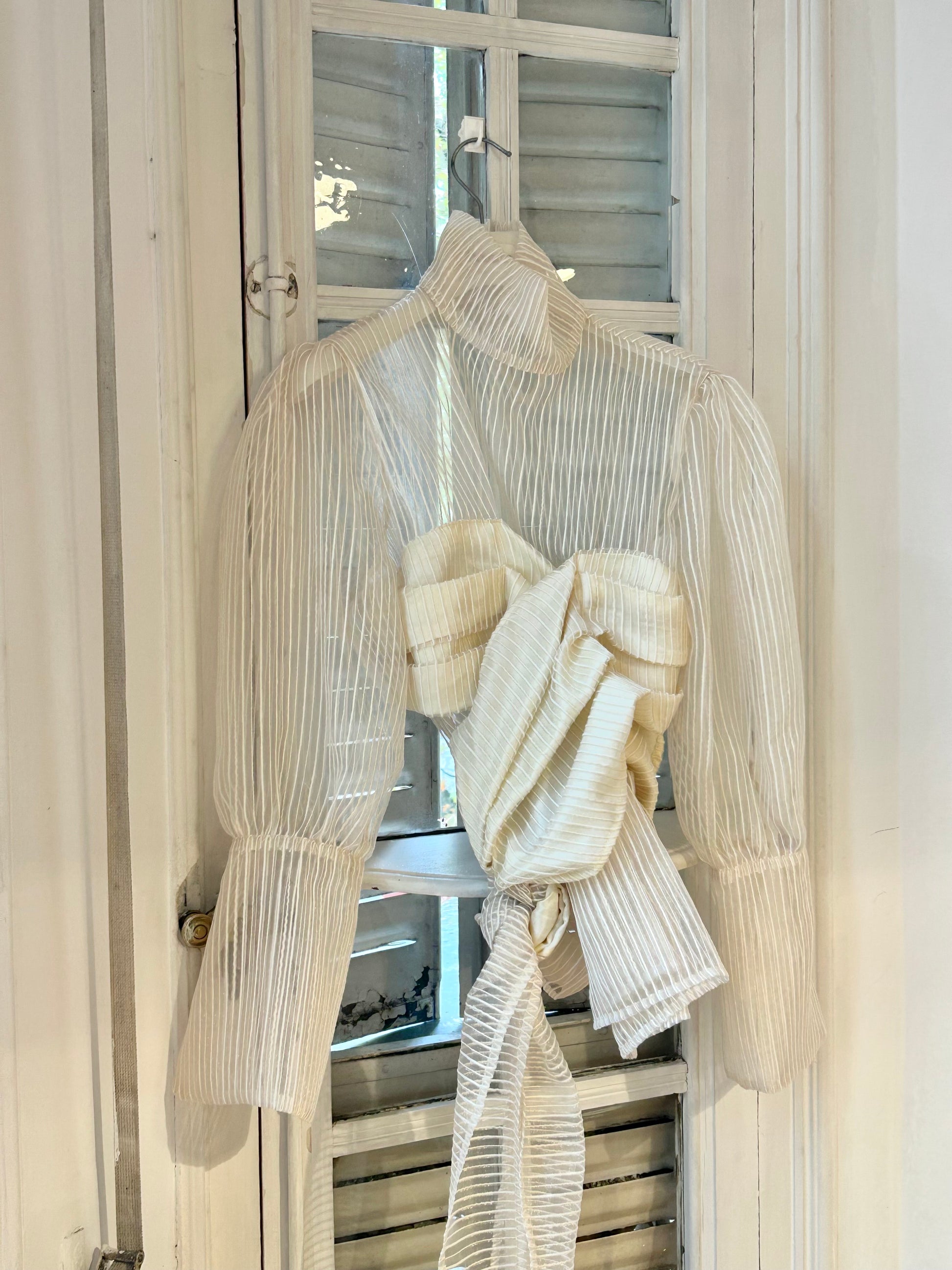 Elevate your style with our white organza blouse, designed for the woman who loves elegance and versatility. Its lightweight, sheer fabric adds a sophisticated touch, while the adjustable tie lets you create multiple looks—tie it at the front, side, or back for endless styling possibilities. Perfect for pairing with jeans, trousers, or skirts, this blouse adapts to your creativity and personal style.