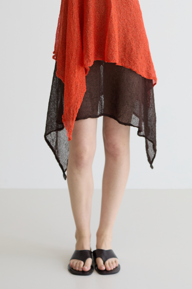 The Zephyr Cape is a lightweight summer layer with quiet movement and sculptural flow. Crafted from an airy, semi-sheer knit, it drapes gently over the shoulders and falls with an open front, creating a soft, cape-like silhouette.